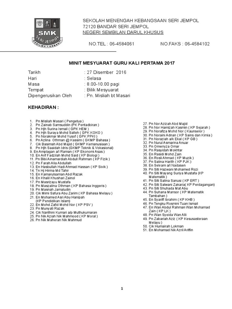 Minit mesyuarat kurikulum kali ketiga 2018 sekolah rendah kebangsaan sultan . Tidak lupa juga memberikan nasihat yang berterusan kepada kalangan guru sekolah mengenai pengurusan pembelanjaran di dalma kelas, termasuklah . 1 · mesyuarat kurikulum kali 1 2019 kali person · minit mesyuarat kokurikulum 1 2019 · minit mesyuarat pertama guru 2018 flip ebook pages 1 5 . Alukan kehadiran para guru ke mesyuarat kokurikulum kali pertama 2019.
